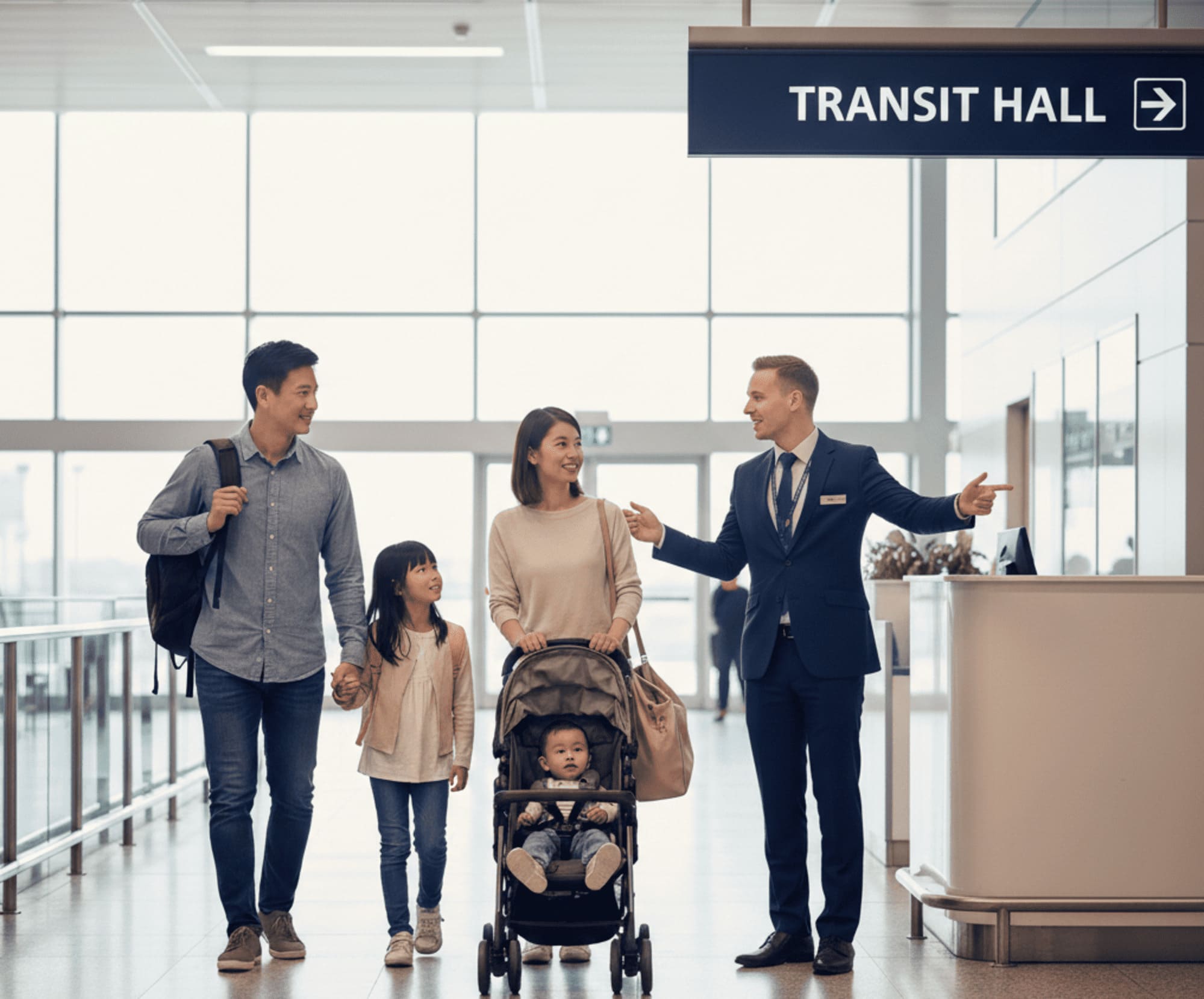 Full escort from arrival gate to departure gate. No stress, no queues.